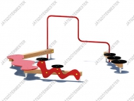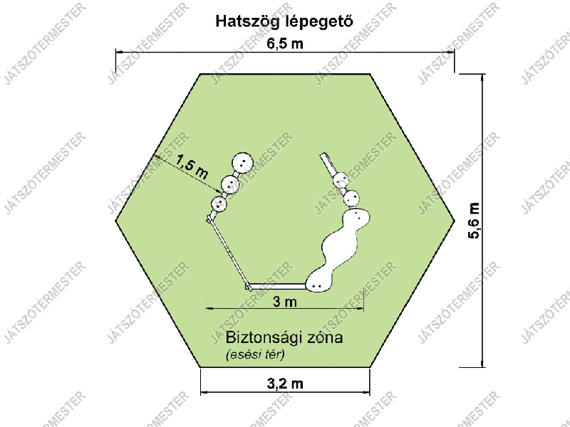 A játék hatszög alakban helyezkedik el, egy üres oldallal. A lépegető öt oldalán öt, különféle egyensúlyozó funkciót alakítottunk ki. Az egyensúlyérzék és a mozgáskoordináció fejlesztését segíti, hogy a lépéshelyek nemcsak vízszintesen, hanem függőlegesen is különböző síkokban vannak. A hatszög lépegetőn végig egyensúlyozni igazi kihívást jelent a gyerekek számára. Ajánljuk közterekre, parkokba, iskolákba, óvodákba egyaránt. Ütéscsillapító réteg kialakítása nem szükséges.