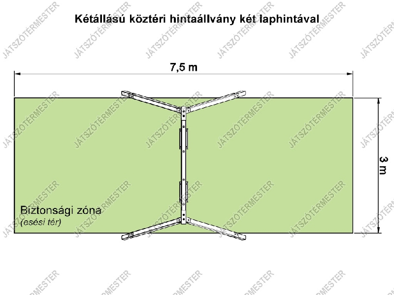 Rétegragasztott borovi fenyőből készült köztéri hintaállvány két hintakiállással, 2 db közterületi alumíniumbetétes laphinta ülőkével. Ajánljuk közterületre, iskolák, óvodák játszótereire. A klasszikus játszóterek elmaradhatatlan eleme, közkedvelt játéka. Porfestett acélkonzolokkal, és 4db megerősített köztéri hintacsuklóval szerelve szállítjuk. Az ár tartalmazza a hintaülőkék költségét is. Több féle színben is rendelhető. Használatához ütéscsillapító réteg kialakítása szükséges.