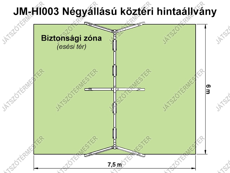 Rétegragasztott borovi fenyőből készült köztéri hintaállvány négy hintakiállással, választható közterületi alumíniumbetétes laphinta, és közterületi biztonsági gyerekhinta ülőkével. Ajánljuk közterületre, iskolák, óvodák játszótereire. A klasszikus játszóterek elmaradhatatlan eleme, közkedvelt játéka. Porfestett acélkonzolokkal, és 8 db megerősített köztéri hintacsuklóval szerelve szállítjuk. Az ár tartalmazza a hintaülőkék költségét is. Több féle színben is rendelhető. Használatához ütéscsillapító réteg kialakítása szükséges.