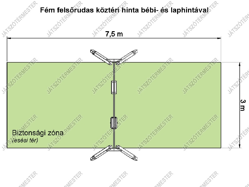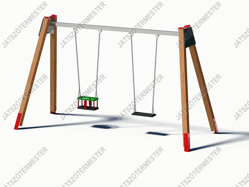Rétegragasztott borovi fenyőből készült köztéri hintaállvány galvanizált acél felső rúddal, megerősített acél oldalkonzolokkal. Két hintakiállással, 1 db közterületi alumíniumbetétes laphinta ülőkével, és 1 db közterületi biztonsági bébihinta ülőkével. Ajánljuk közterületre, iskolai, óvodai játszóterekre. Nagyobb igénybevételnek kitett játszóterekre készítjük, galvanizált acélkonzolokkal, és 4db megerősített köztéri hintacsuklóval szerelve szállítjuk. Az ár tartalmazza a hintaülőkék költségét is. Használatához ütéscsillapító réteg kialakítása szükséges.