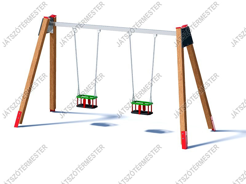 Rétegragasztott borovi fenyőből készült köztéri hintaállvány galvanizált acél felső rúddal, megerősített acél oldalkonzolokkal. Két hintakiállással, 2 db közterületi biztonsági bébihinta ülőkével. Ajánljuk közterületre, iskolai, óvodai játszóterekre. Nagyobb igénybevételnek kitett játszóterekre készítjük, galvanizált acélkonzolokkal, és 4db megerősített köztéri hintacsuklóval szerelve szállítjuk. Az ár tartalmazza a hintaülőkék költségét is. Használatához ütéscsillapító réteg kialakítása szükséges.