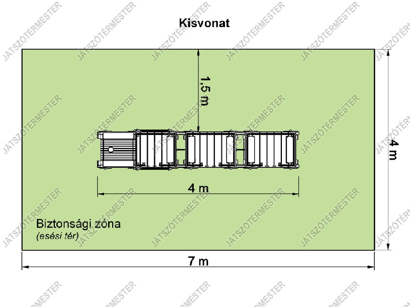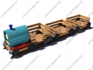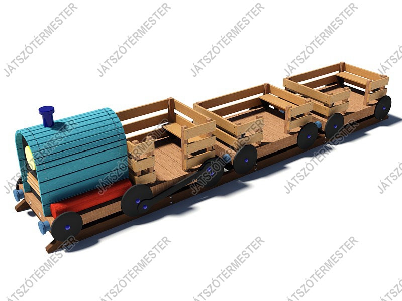 A mozdonyból és két kocsiból álló kisvonat kedvenc pontja lehet a játszótereknek. A szerelvény rétegragasztott borovi fenyőből készül, változatos színes festéssel. A felépítmény rétegragasztott borovi fenyő "síneken" áll. Az eszközt elsősorban a kisebb korosztály számára terveztük, bölcsődékbe, óvodákba ajánljuk. Ütéscsillapító réteg kialakítása nem szükséges.