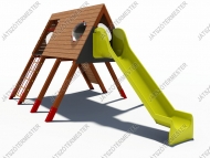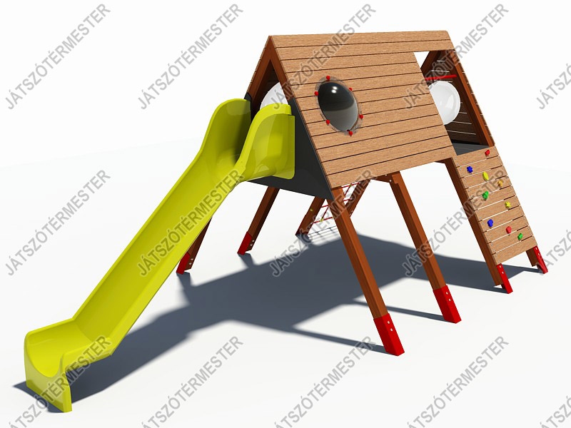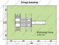 A képeken látható babaház láttán elindulhat a gyerekek fantáziája, "leszállhatnak" az űrhajóval a játszótéren felfedezhetik a környező játékokat, aztán újra visszatérhetnek az űrhajóba. A képzelet szárnyalását a futurisztikus forma, a rovarra emlékeztető lábak és az elhelyezett plexi buborék ablakok segítik. A kuckóba feljutni két oldalról mászóháló, illetve mászófal segítségével lehet, a lejutást pedig "leszállás után" a kimaradhatatlan csúszda biztosítja.