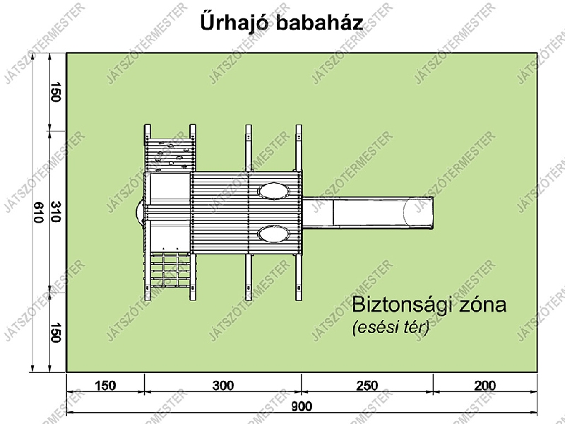 Az űrhajó babaházat óvodástól egészen iskolás korig ajánljuk, óvodai és iskolai udvari játékként, de központi elemként közterületekre, parkokba, erdei játszóterekre is telepíthető. Megfelel az idevágó 78/2003. (XI. 27.) GKM rendelet és az MSZ EN 1176-1 szabvány ajánlásainak. Magassága miatt védőtávolságok és az ütéscsillapítás kialakítása kötelező!