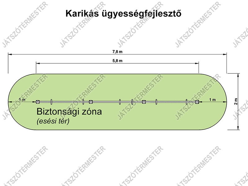 Az eszköz a figyelmet, és a koncentrációkészséget javítja, korosztálytól függetlenül. Ez az ügyességfejlesztő játék helytől és korcsoporttól függetlenül ajánlható bölcsődékbe, óvodákba, iskolákba, önkormányzati és közületi játszóterekre egyaránt. A termék eleget tesz a játszóterek biztonságosságáról szóló 78/2003. (XI. 27.) GKM rendelet és az MSZ EN 1176-1 szabvány ajánlásainak, külön ütéscsillapító réteg kiépítését nem igényli.