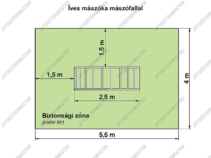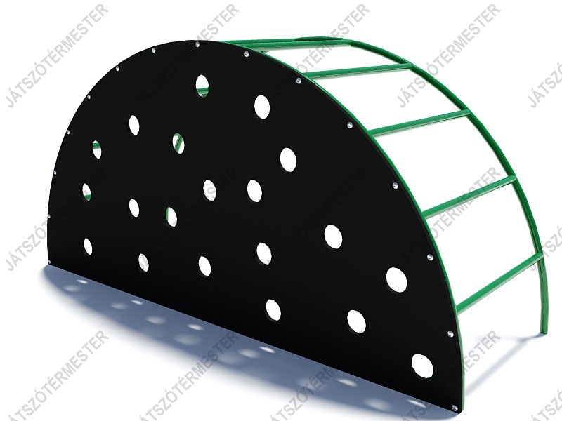 A hagyományos íves mászóka és a lyukas mászófal újszerű kombinációja. A szerkezet teljes egészében porfestett acélból készül, több színben is megrendelhető. A fokozott igénybevételt és az időjárás viszontagságat jól tűri, kevés karbantartást és javítást igényel. Közterületekre, iskolákba, óvodákba ajánljuk. Ütéscsillapító réteg kialakítása szükséges.