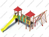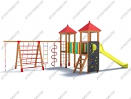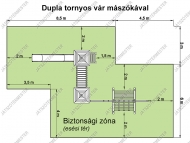 A két sátortetős tornyot színes híd köti össze, a tornyokra a feljutást létra, függőleges mászófal és mászóháló segíti. A két toronyból és hídból álló alap játékhoz kiterjesztett funkciókat adtunk a mászóka szekció hozzáadásával, amely kígyócsövet, kötélhágcsót, nagy köteles mászókát és egy külön mászókötelet is tartalmaz. A tornyokról a lejutáshoz természetesen elmaradhatatlan az üvegszál erősítésű műgyantából készült csúszda.