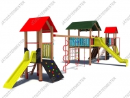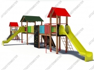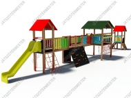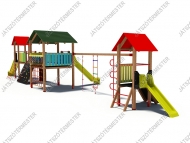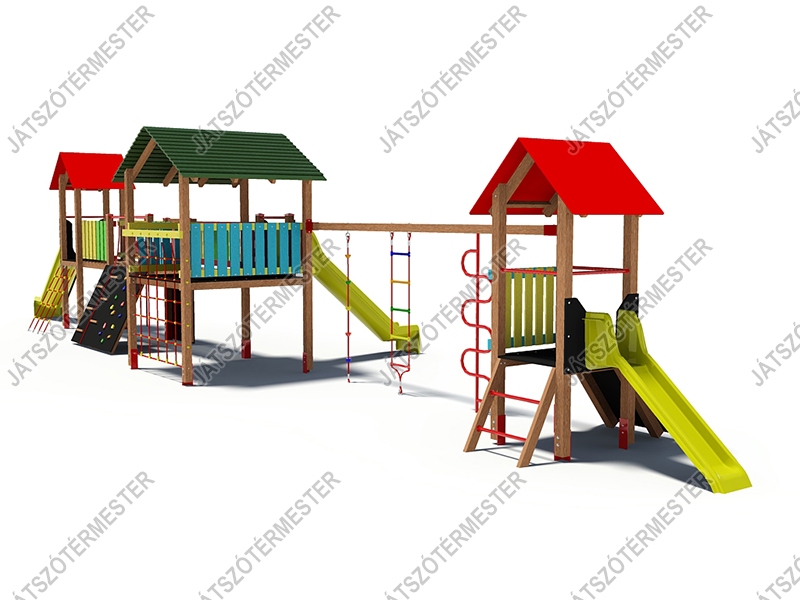 Komplex játszóvár kollekciónk legterjedelmesebb darabja, változatos mozgásfunkciókkal, kisebbek és nagyobbak részére egyaránt.