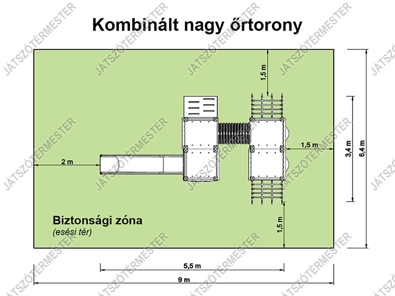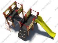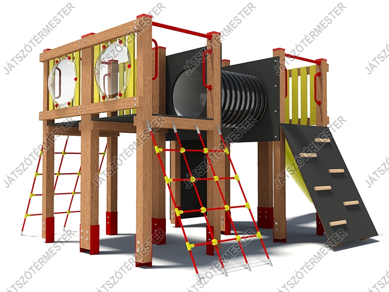 Ezt a játékot bátran ajánljuk nagyobb közterületi játszóterekre, parkokba, erdei játszóterekre. Az eszköz dobogómagassága 1,4 m, esésterében ütéscsillapító réteg kialakítása kötelező!