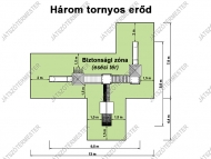 Három tornyos erőd köztéri játékunkat bátran ajánljuk minden nagyobb parkba, iskolai, önkormányzati játszótérre önálló elemként, vagy nagyobb játszótéri projektek kiegészítő játékaként. A termék megfelel a 78/2003. (XI. 27.) GKM rendelet és az MSZ EN 1176 szabványok szabályainak, ezen szabályok értelmében esésterében ütéscsillapító réteget kötelező kialakítani!