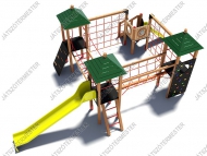 A játszóvár egyaránt tartogat kihívásokat a bátraknak és a kevésbé vállalkozó kedvű gyerekeknek is. Az oldalakon található két óriás mászóhálót egyszerre többen is használhatják. A kicsiknek a kis bástya oldalán található csúszdához könnyű feljutni a biztonságos lépcsőn, de az átellenes toronyból a nagyobb csúszdához is fel lehet mászni létra segítségével. Közepes kihívás a mászóháló és a tornyok között található gerenda, míg a lajhármászón történő végighaladás alul és felül is egyaránt bátorságot is igényel. Kiegészítő elemként ferde és függőleges mászófal, és tűzoltócső gondoskodik a szórakozásról, a fel, és lejutásról.