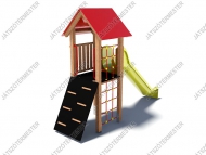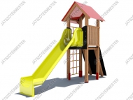 Alap mászótorony létra helyett mászórámpával, teljes oldali mászóhálóval, 3 m-es köztéri csúszdával - beülőmagasság: 1,4 m. Kiegészítőként ajánljuk nagyobb játszóterekre, elsősorban az óvodás, iskolás korosztály részére készült mászható játék. A gyerekek számára a kihívást létra hiányában a rámpán vagy a mászóhálón való feljutás jelenti. A torony kompakt műanyag lemez tetővel készül. Ütéscsillapító réteg kialakítása szükséges.