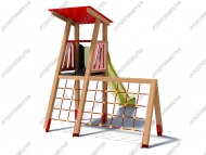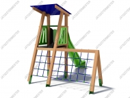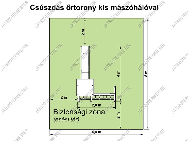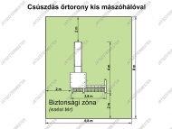 A ferde tornyos mászókáink fő formáját a speciálisan erre a célra tervezett torony adja, amelynek elején függőleges lábak helyett a torony oldala a talajjal 70 fokos szöget alkot. A ferde oldal teszi lehetővé a létra helyetti köteles mászóháló, és a torony melletti mini mászóhálós mászóka alkalmazását. A torony dobogó- és a mászóka esés magassága 1,4 m. Ütéscsillapító réteg kialakítása kötelező.