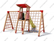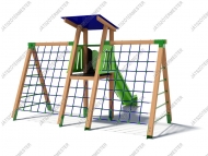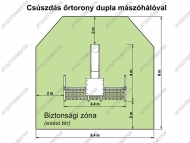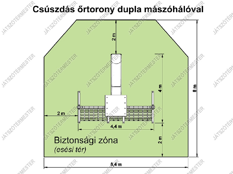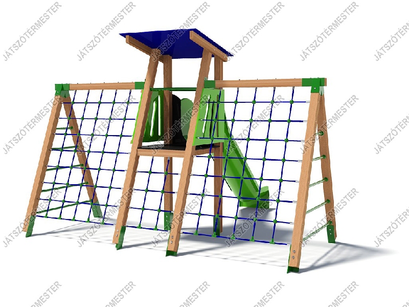 Ferde tornyunk mellé elhelyezett mászóhálós mászókánkat megdupláztuk. Ezen az eszközön a totony mellett mindkét oldalon a ferde oldallal egy síkban emelkedő köteles mászóhálót alakítottunk ki, teljesen szimmetrikus külalakot hozva létre. Az eszközt egyszerre akár 12 gyerek is használhatja. A felhasznált anyagok és rögzítési megoldások jól ellenállnak a fokozott használatnak, az időjárás és az idő viszontagságainak. Esésmagassága miatt ütéscsillapító réteg kialakítása kötelező!