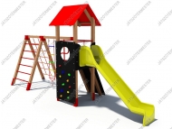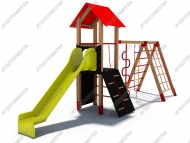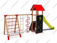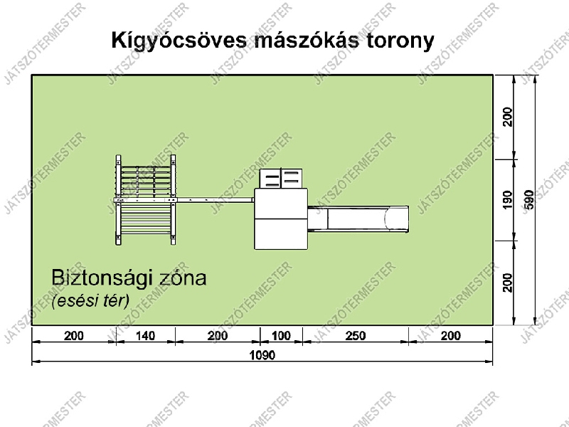 A három mászókás torony közül ez a közepes nagyságú eszköz. A kígyócső játékélményét jól kiegészíti a mellette elhelyezett kötéllétra, amely - a kígyócsővel ellentétben egy új, kevésbé stabil feladatot jelent. A kötélhágcsó a jól bevált acélbetétes mászókötélből készül, megerősített fémbetétes létrafokokkal, amelynek alsó pontja a talajhoz rögzített. Az eszköz vízszintesen is mászható, a mászókáról lehetőség van a toronyba is felkapaszkodni, a kígyócsövön és a kötéllétrán keresztül.